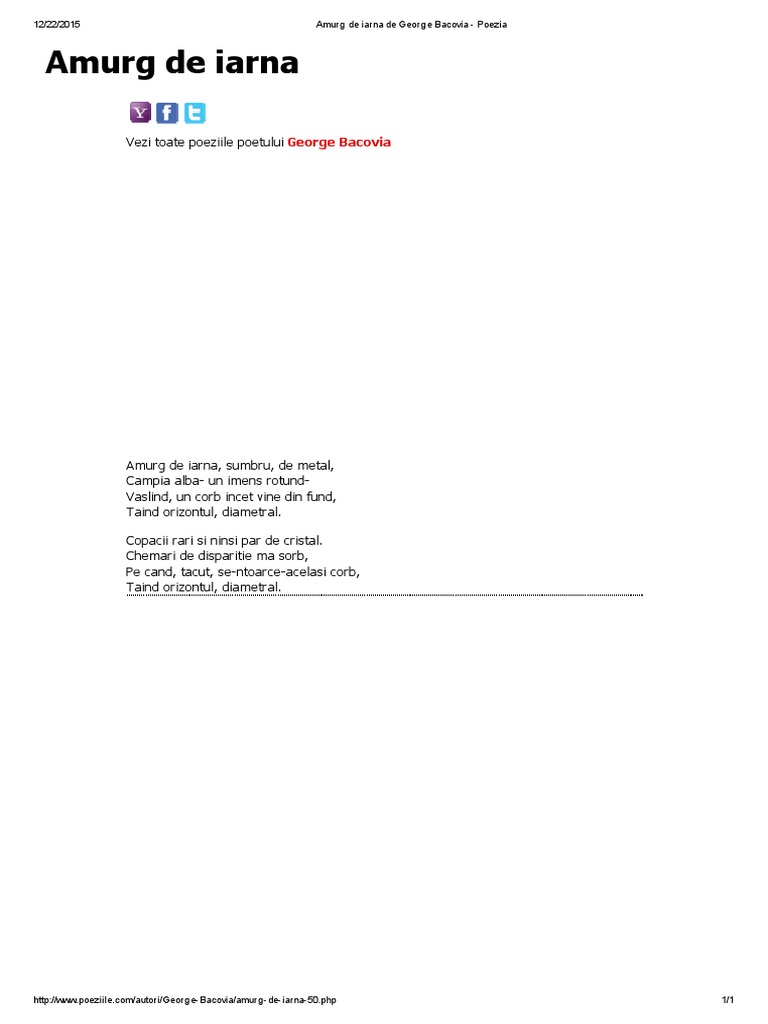Lumea Poeziilor George Bacovia Amurg De Iarnă