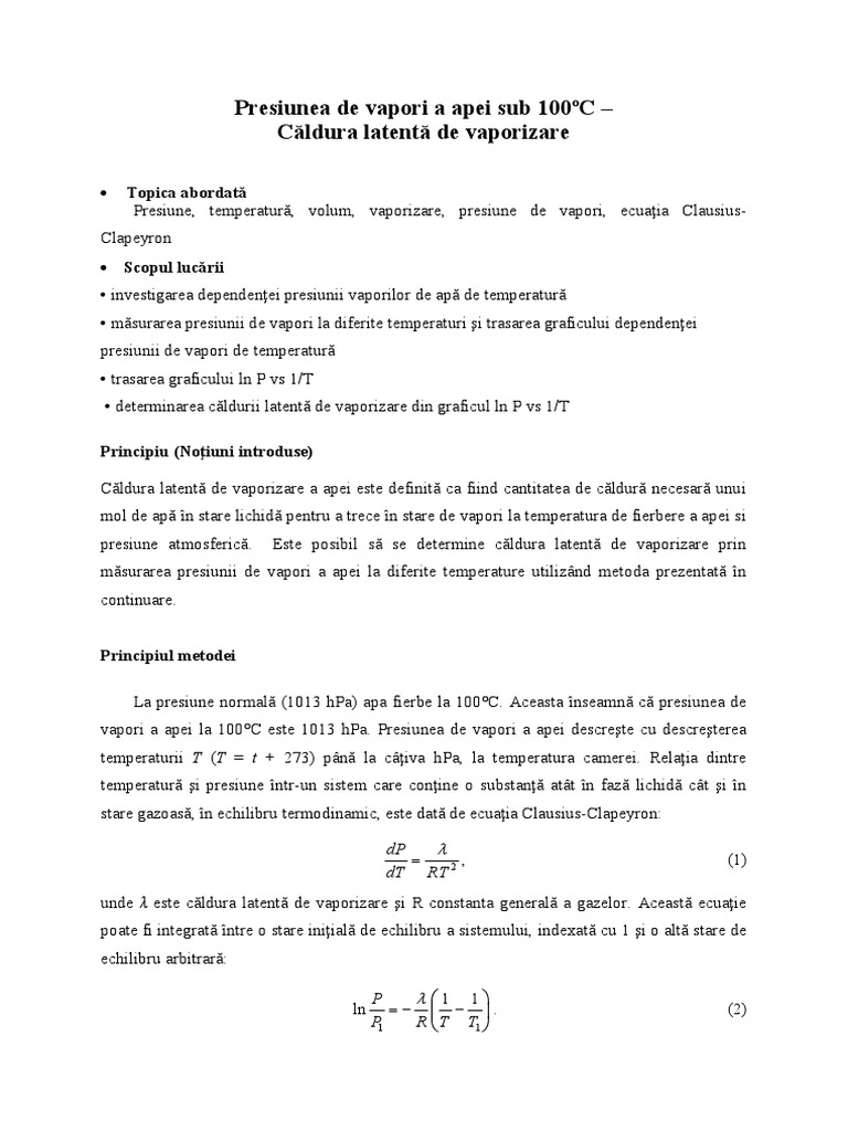 Presiunea De Vapori A Apei Sub 100 Grade Celsius