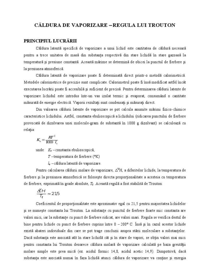 Caldura De Vaporizare Regula Lui Trouton