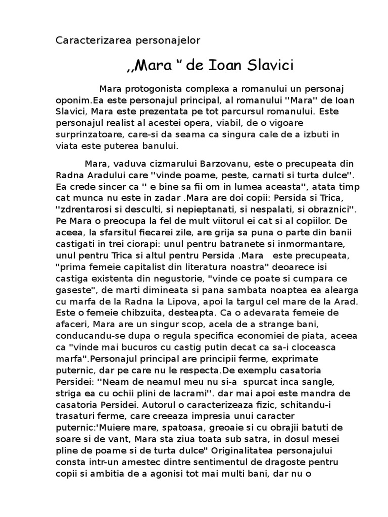 Referat Caracterizarea Personajului Principal Din Romanul Mara De
