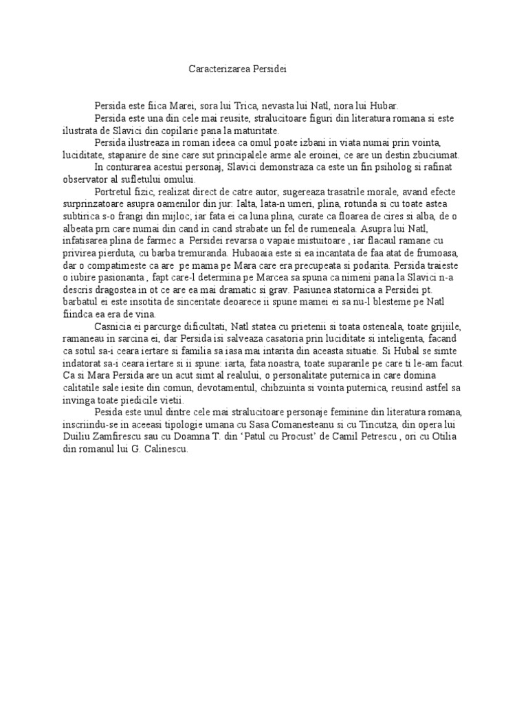 Caracterizarea Persidei Din Romanul