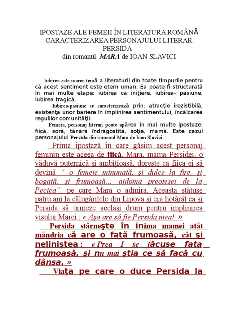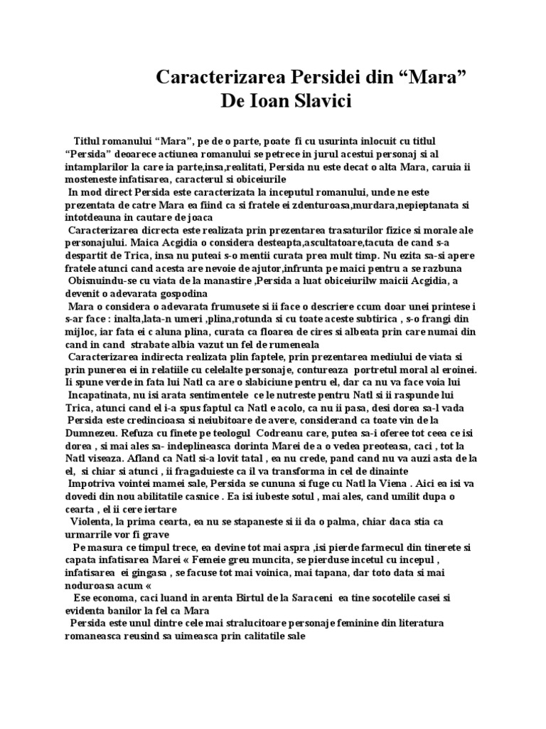 Caracterizare Persida Mara Ioan Slavici