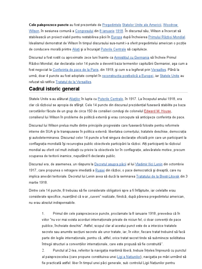 Cele 14 Puncte Ale Președintelui Wilson Wikiwand