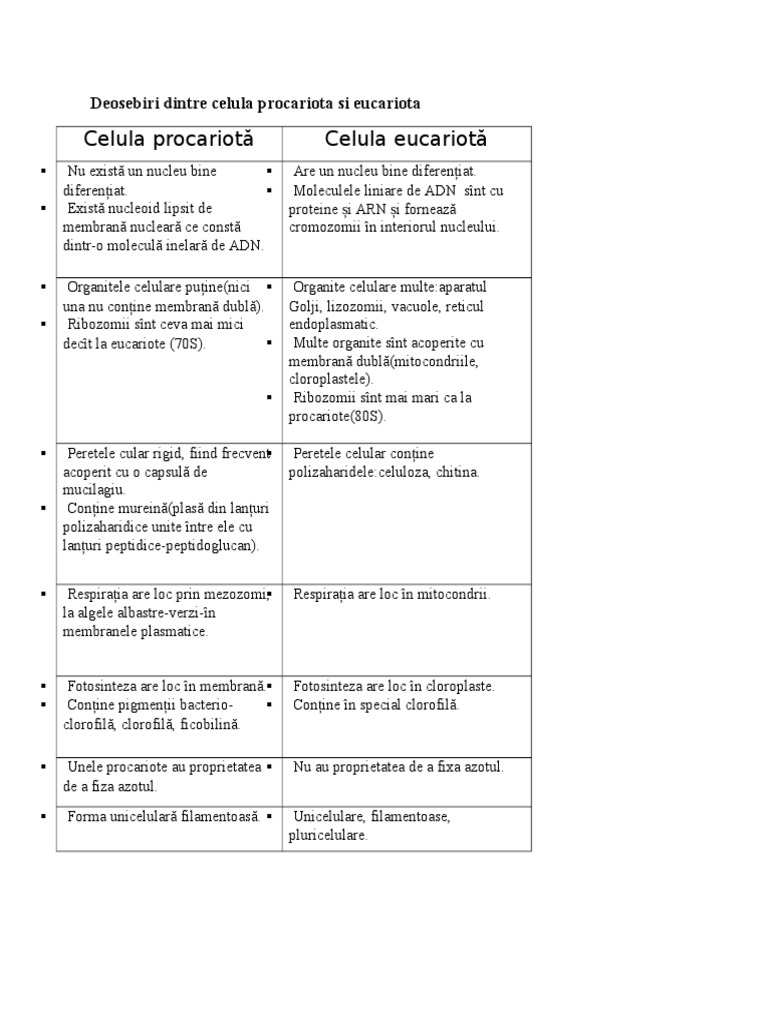 Deosebiri Dintre Celula Procariota Si Eucariota