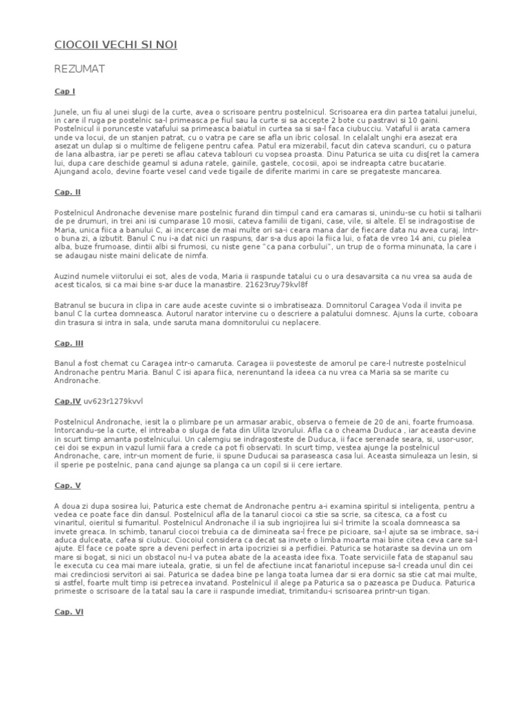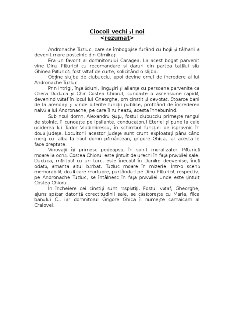 Ciocoii Vechi Si Noi Rezumat Pe Capitole