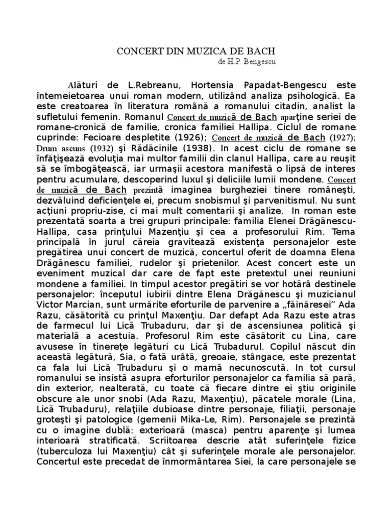 Referat Hortensia Papadat Bengescu Concert Din Muzica De Bach