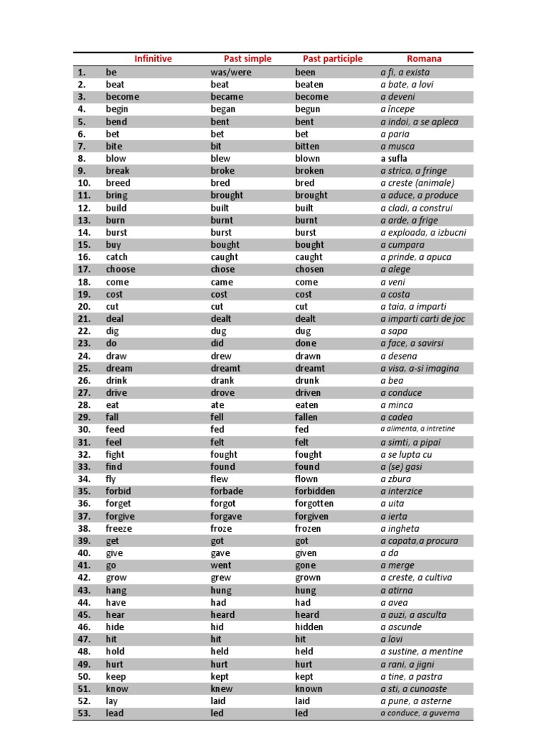 Lista Verbelor Neregulate Pe Grupe