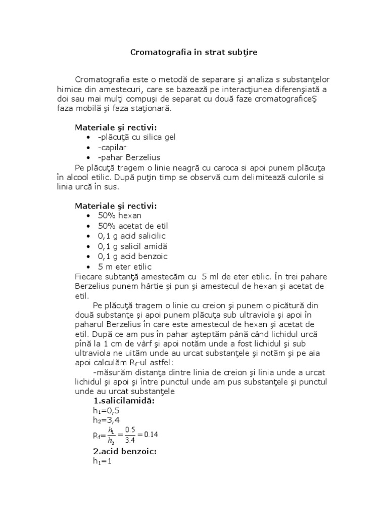 Doc Cromatografia Este O Metoda De Separare Si Analiza A Substantelor Chimice Din Amestecuri Mihaela Moraru Academia Edu