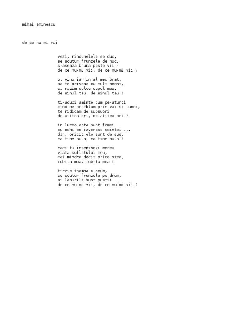 De Ce Nu Mi Vii Mihai Eminescu Chords Chordify