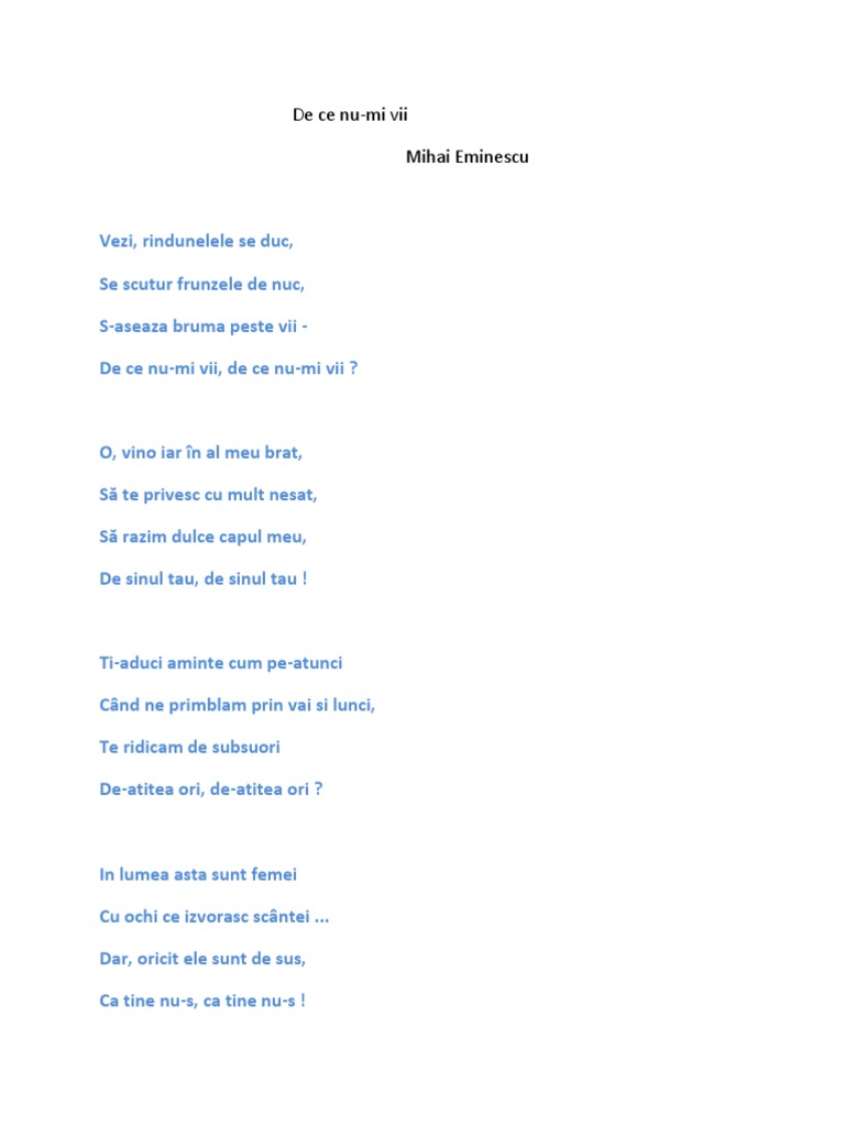 Poezie Universala Mihai Eminescu De Ce Nu Mi Vii Youtube