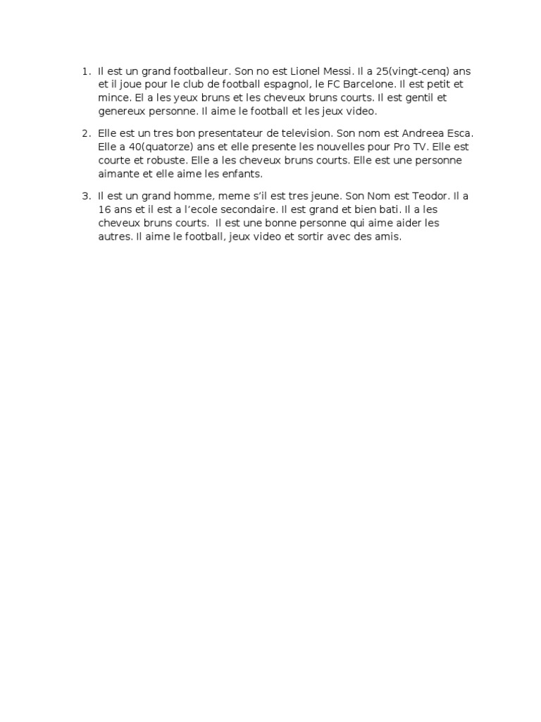 Descrierea Unui Prieten In Franceza