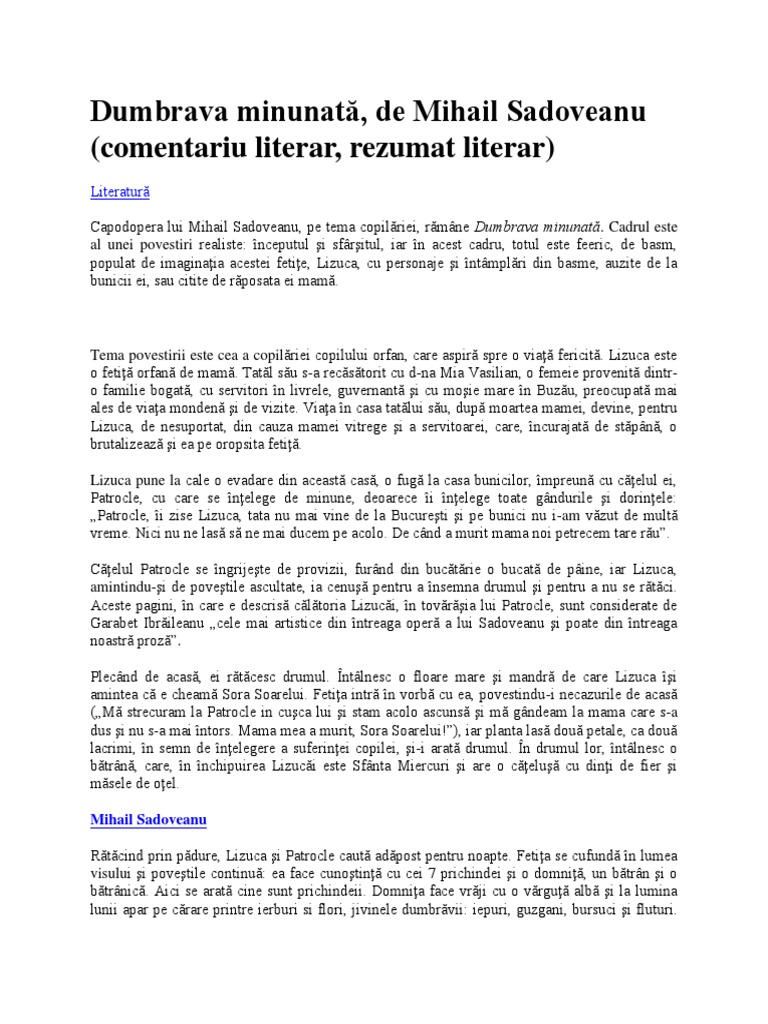Cieneyspin Blog Archive Dumbrava Minunata Mihail Sadoveanu