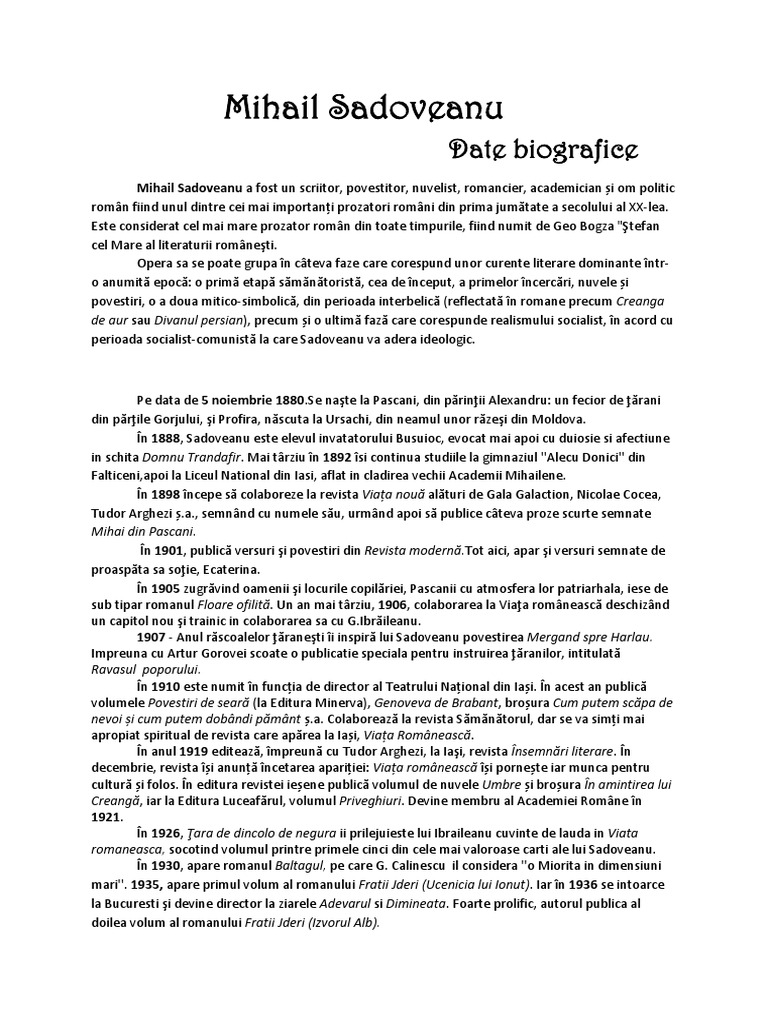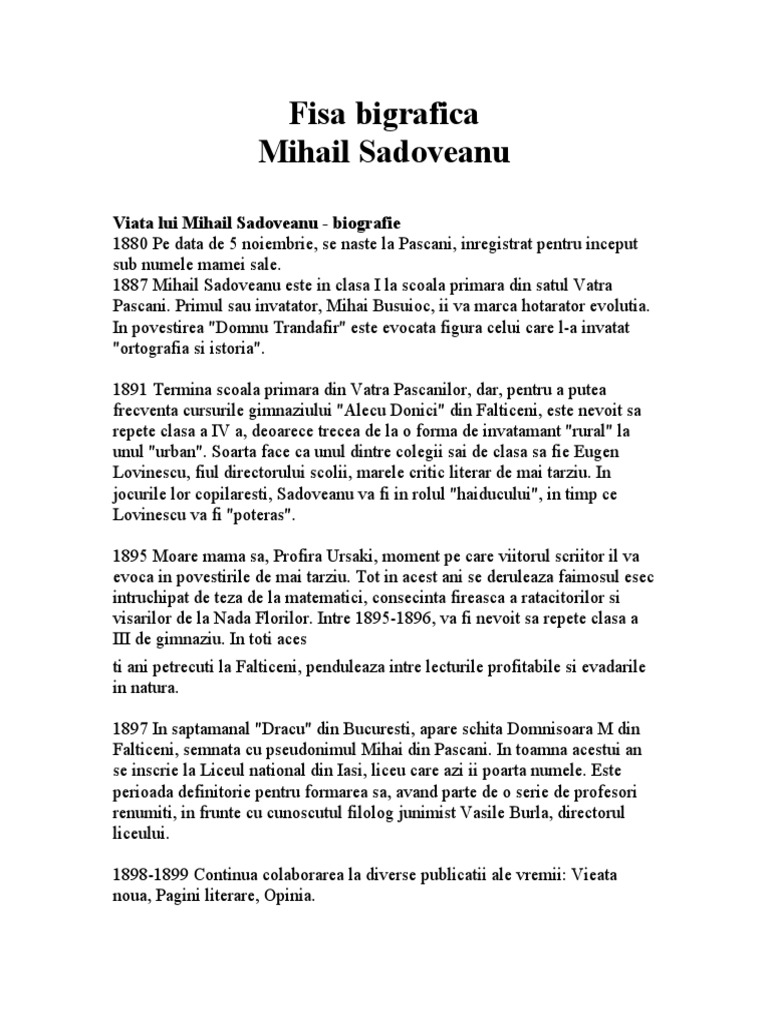 De Făcut Fisa Biografică Despre Mihail Sadoveanu Va Rog Ajutați