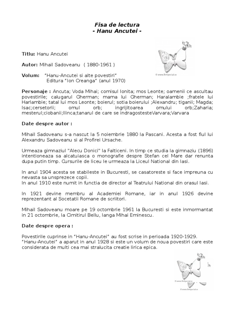 Fisa De Lectura Hanul Ancutei Tocilar Ro