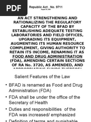Ra 9711 Bfad Strengthening Law Food And Drug Administration