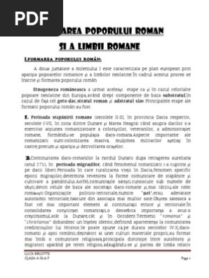 Formarea Poporului Roman Si A Limbii Romane Istorii Regăsite