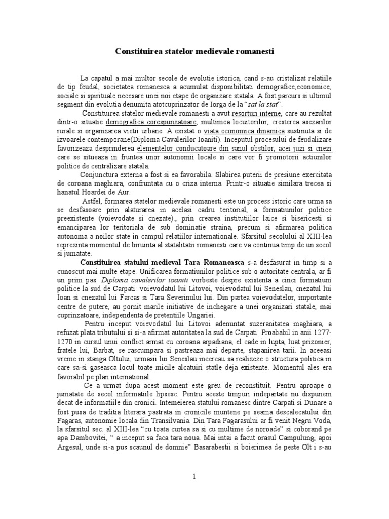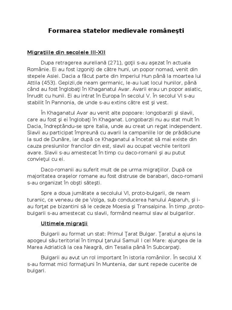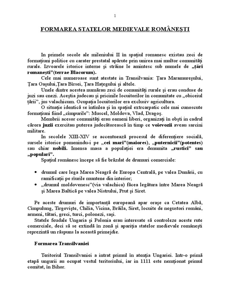 Referat Formarea Statelor Medievale Romanesti Istoria Romanilor