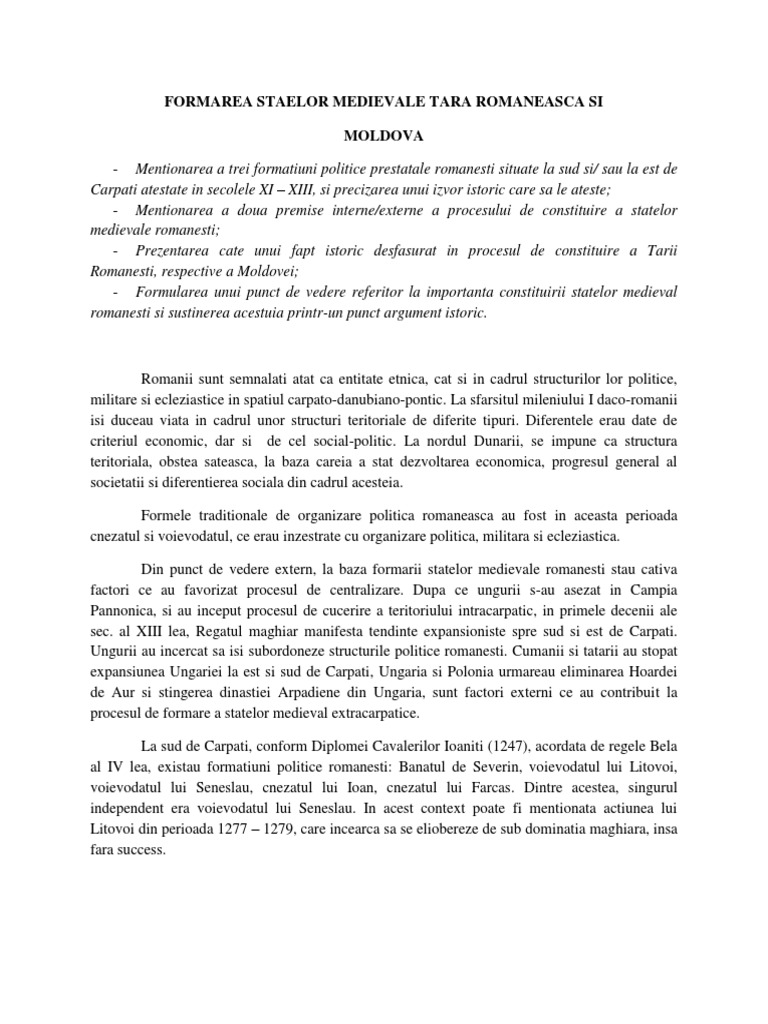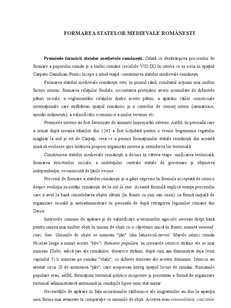 Formarea Statelor Medievale Romanesti Eseu