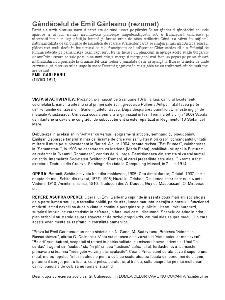 Saracutul De Emil Garleanu Anideșcoală Ro