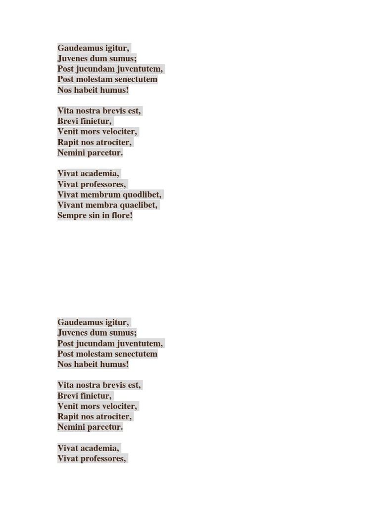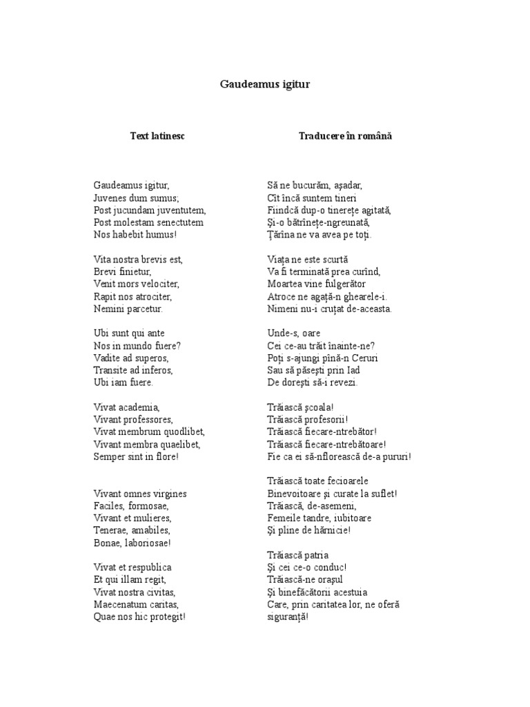 Versuri Gaudeamus Igitur Text In Limba Romana Si Latina