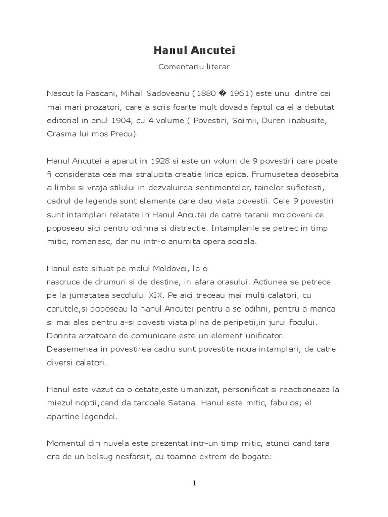 Mihail Sadoveanu Hanu Ancutei Pdf Document