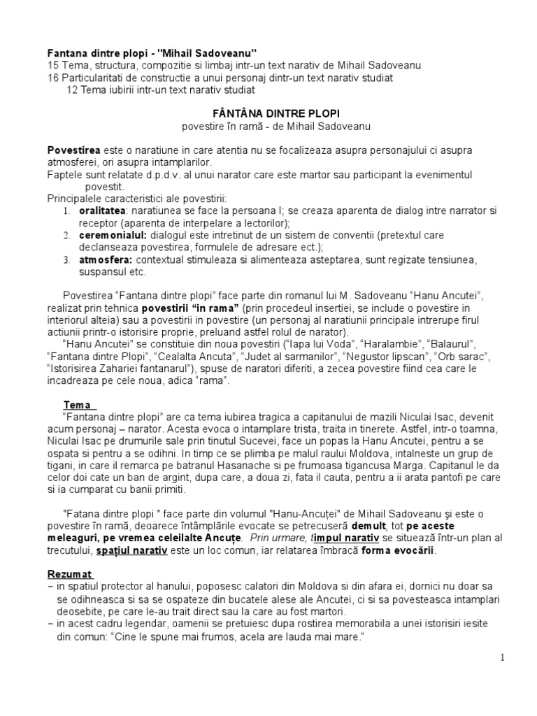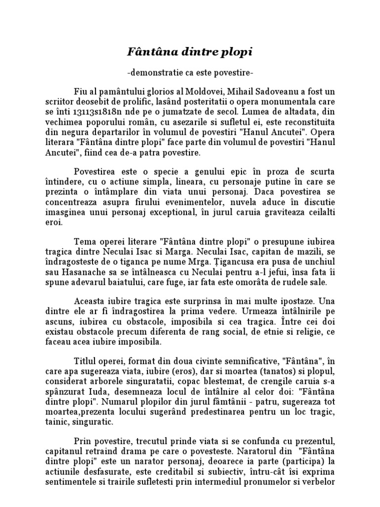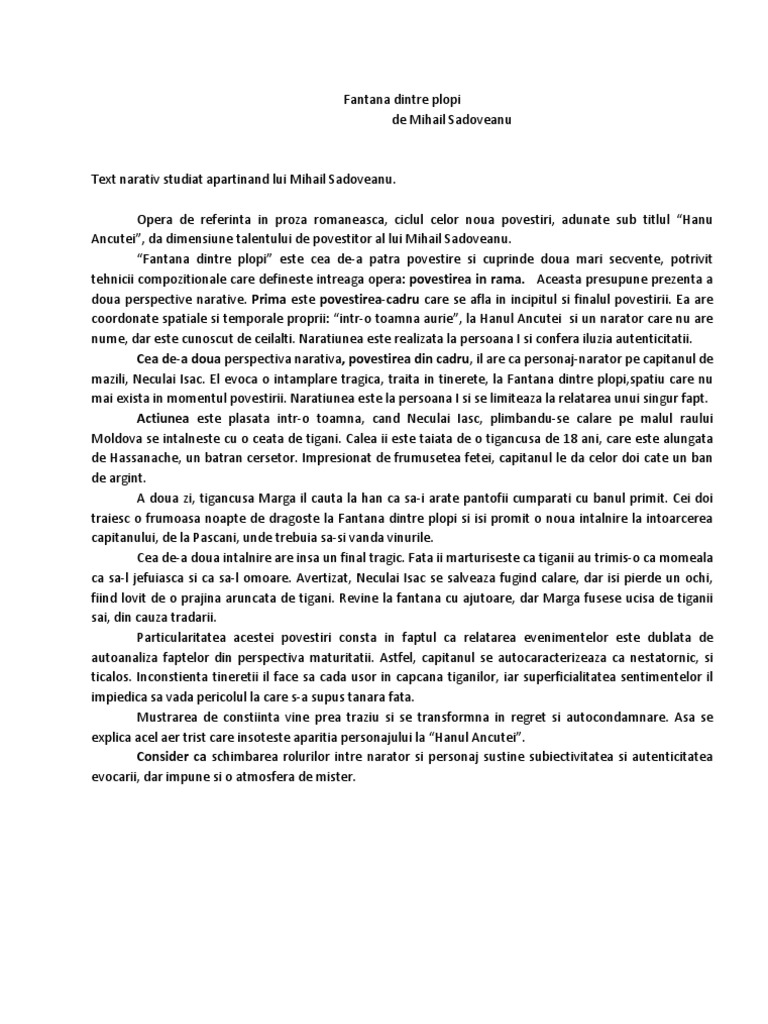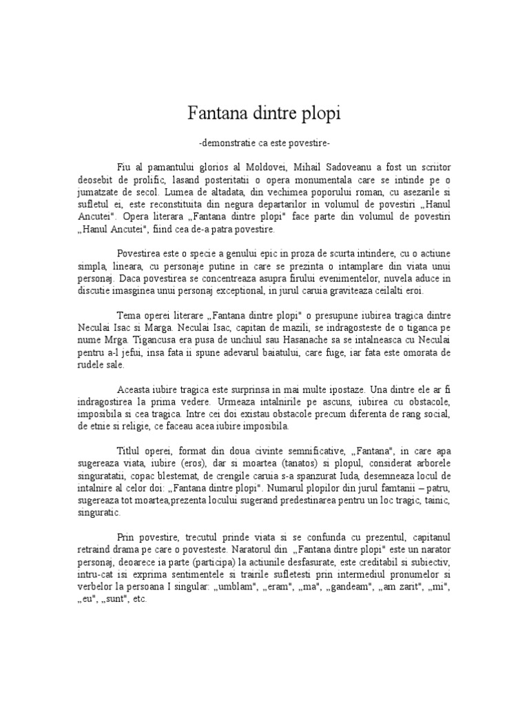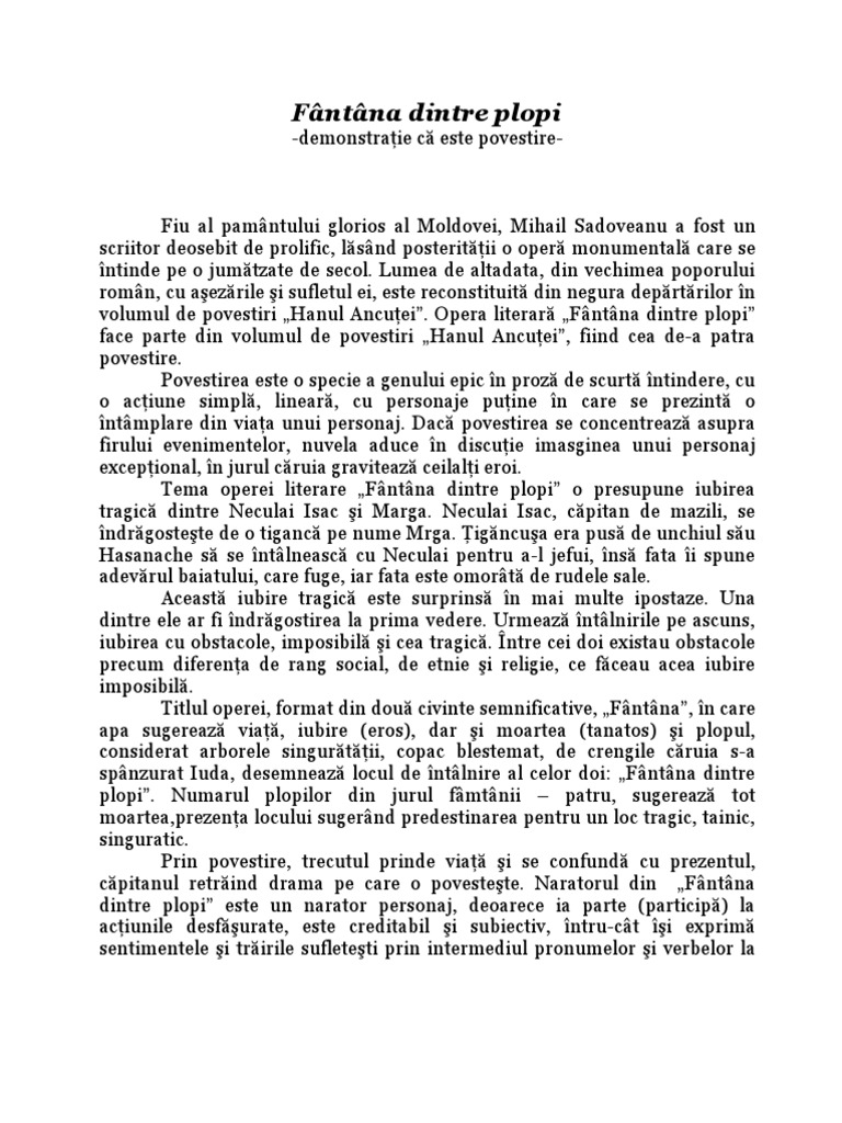 Referat Fantana Dintre Plopi E Mihail Sadoveanu 327412 Graduo