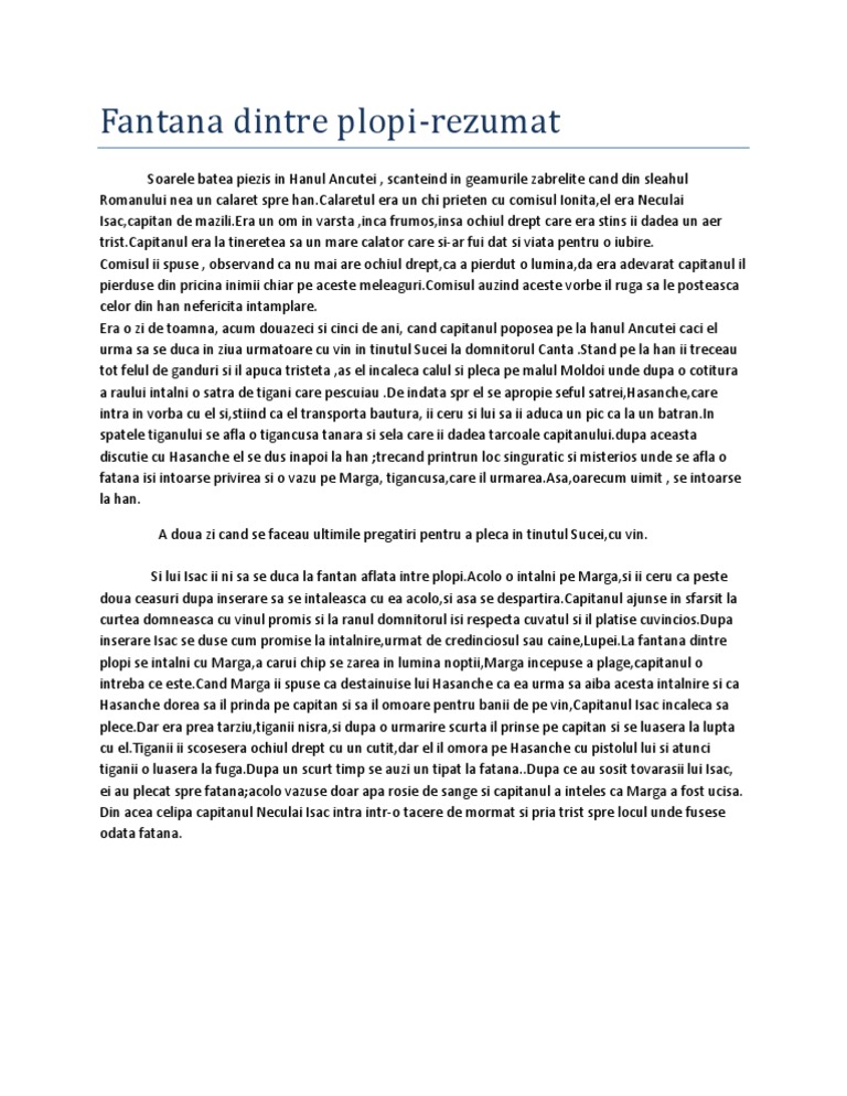 Doc Fntana Dintre Plopi Povestire Bianca Grecu Academia Edu