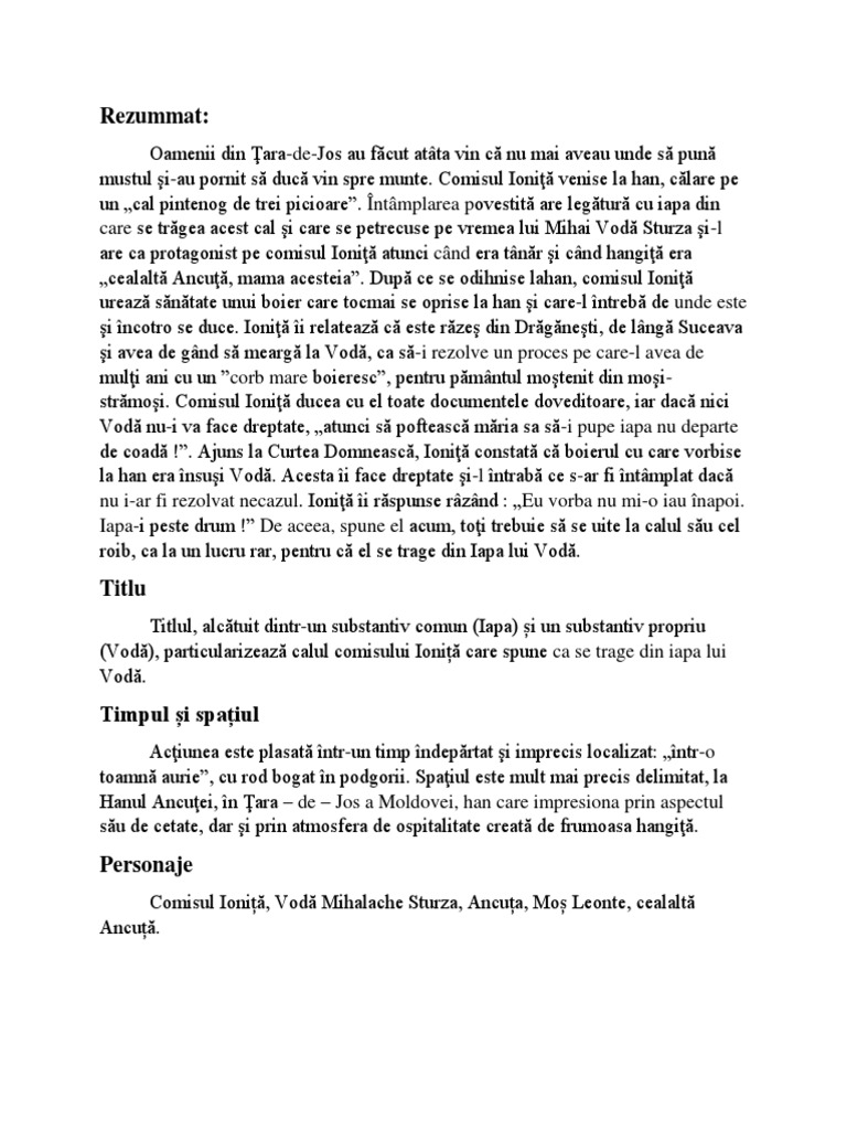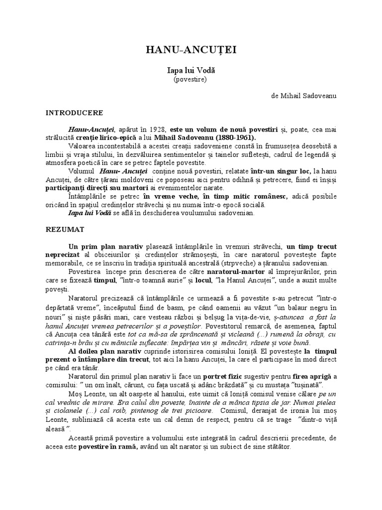 Rezumat Iapa Lui Voda Hanul Ancutei 117179 Graduo