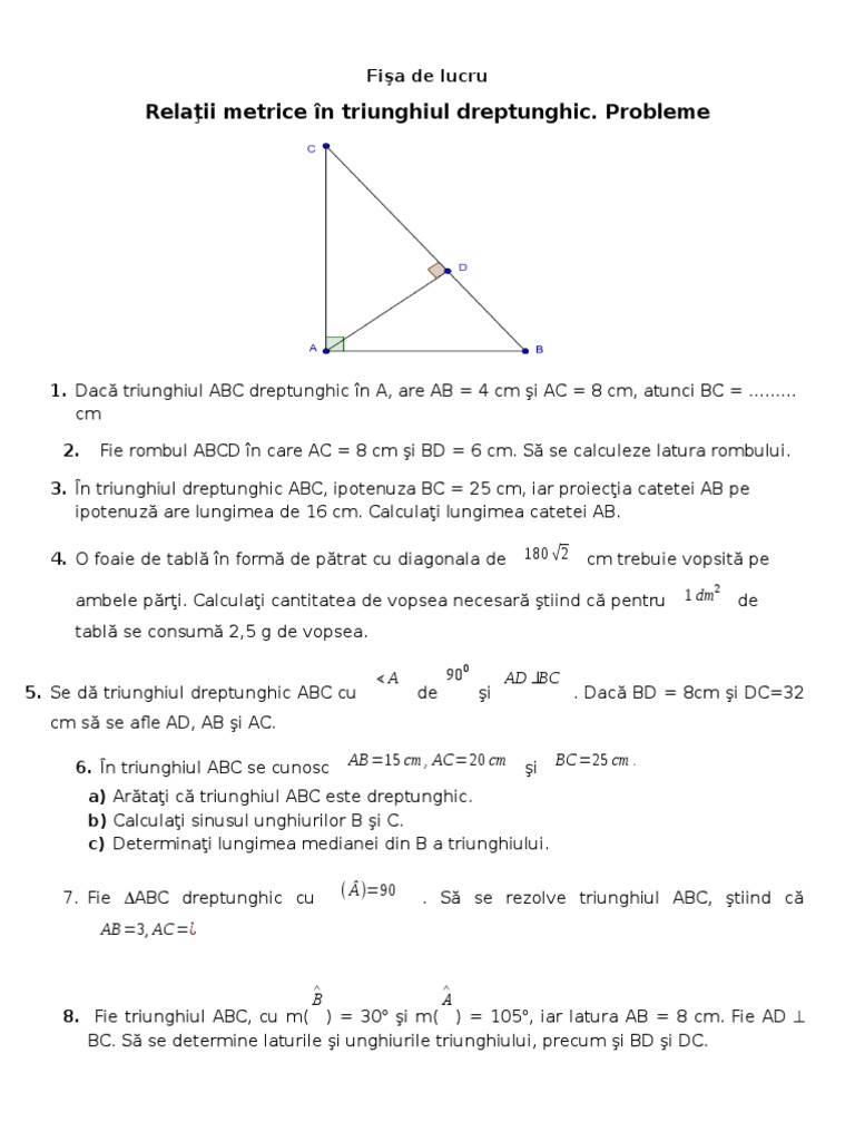 In Triunghiul Dreptunghic Abc M A 90 Si M B 30 Se Duce