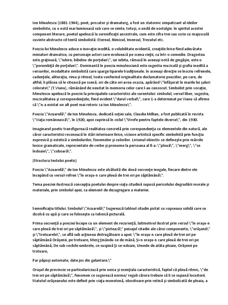Acuarela De Ion Minulescu Poezie Simbolistă Poezie Lirică Lirism Obiectiv