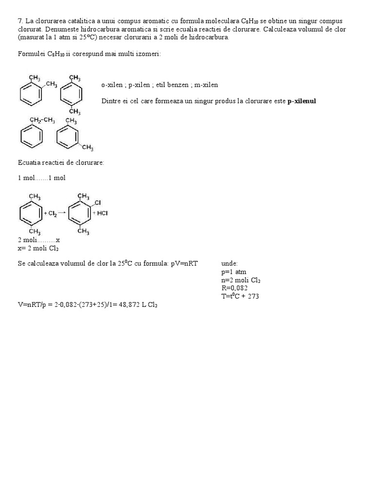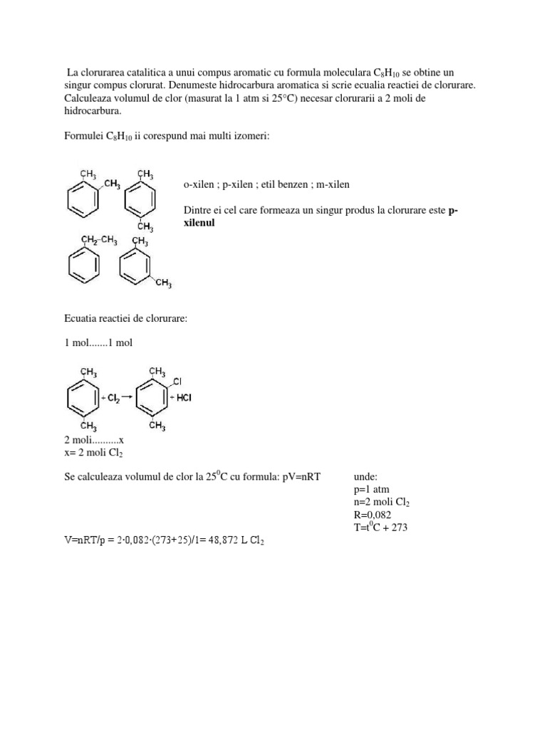 La Clorurarea Catalitica A Unui Compus Aromatic Cu Formula