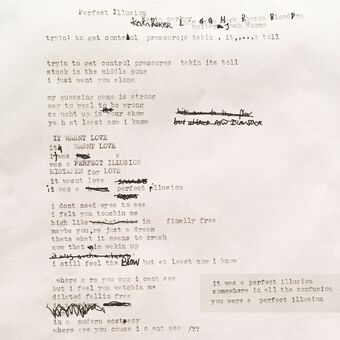 Lady gaga perfect illusion lyrics. Though perfect illusion first seems like a straightforward song about a failed love affair lady gaga actually wrote it about the pitfalls of living in the age of social media. About perfect illusion perfect illusion is a song recorded by american singer lady gaga. Top lyrics of 2011. Trying to get control pressure s taking its toll stuck in the middle zone i just want you alone my guessing game is strong way too real to.