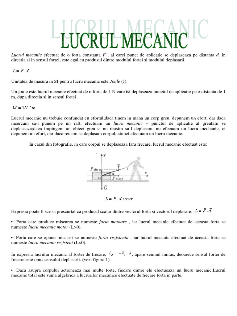 Lucrul mecanic este o marime fizica derivata scalara si de proces. Un joule este lucrul mecanic efectuat de o forta de un newton care isi. Lucrul mecanic al forţei de greutate se calculează după formula. 3 tips to train your teams and clients online.