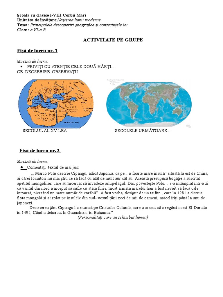 Marile Descoperiri Geografice Fise De Lucru