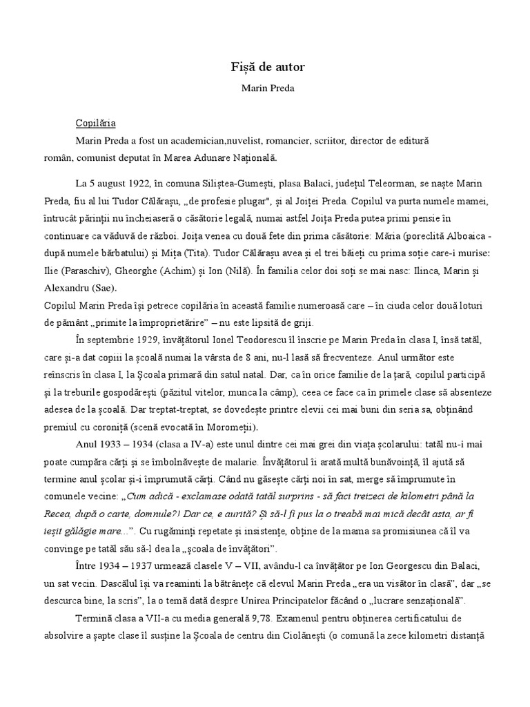 Fisa Bibliografica A Lui Marin Preda Vyly3epp5enm