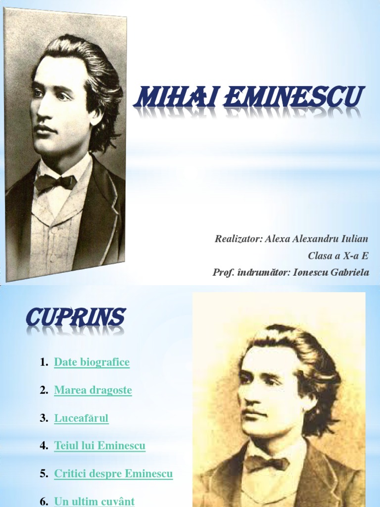 Mihai Eminescu Realizator Alexa Alexandru Iulian Clasa A X A E