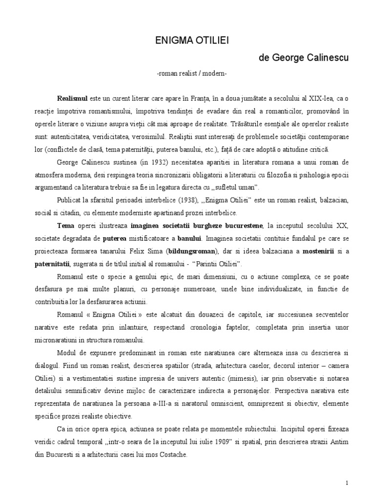 Doc Enigma Otiliei Calinescu Andreea M Academia Edu