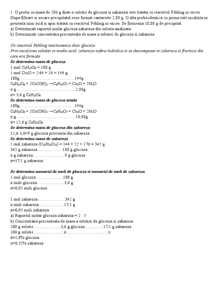 O Proba Cu Masa De 200 G Dintr O Solutie De Glucoza Si Zaharoza