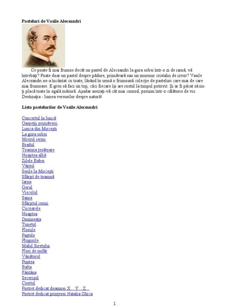 Pasteluri De Vasile Alecsandri