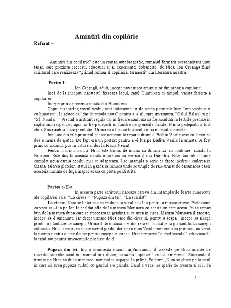 Referat Amintiri Din Copilarie Fragment 330544 Graduo