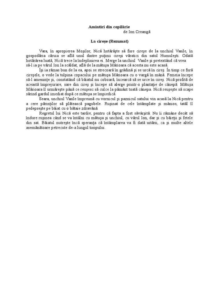 Rezumat La Textul Amintiri Din Copilarie Va Rog Repede La Romina