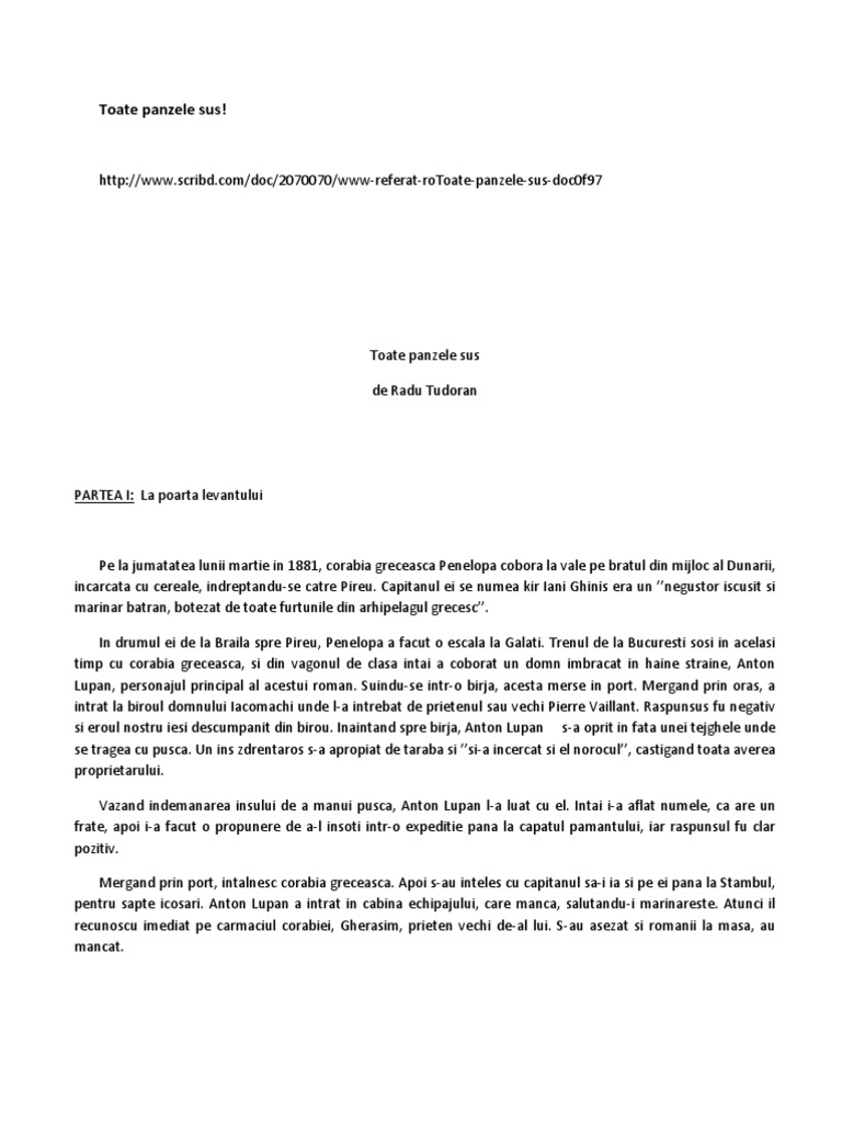 Referat Toate Panzele Sus De Radu Tudoran 338734 Graduo