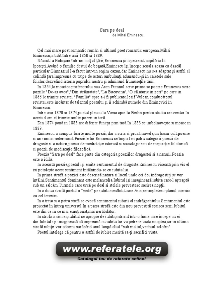 Mihai Eminescu Sara Pe Deal Rezumat 5143qyw8gjlj