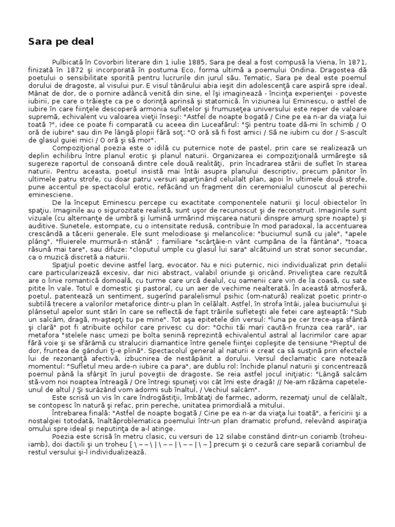 Sara Pe Deal De Mihai Eminescu 1 Pnxk09wrqg4v