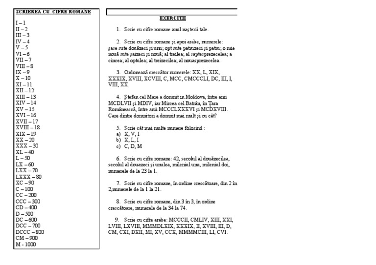 Numerele Romane Echivalența In Litere Arabe De La 1 La 100 Stiri Pe Surse Cele Mai Noi Stiri