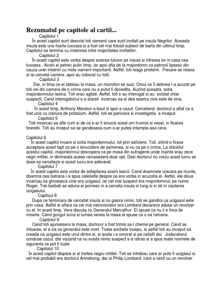 Zece Negrii Mititei Rezumat Pe Capitole
