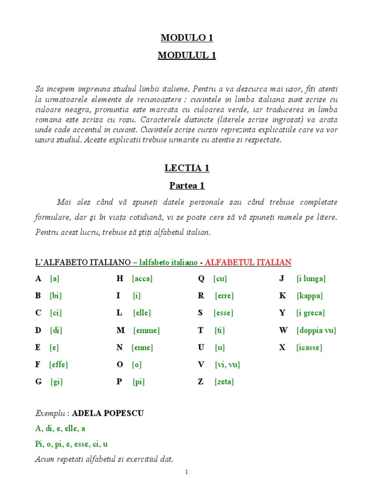 Doc Notiuni Elementare Limba Italiana Ana Maria Puiu Academia Edu